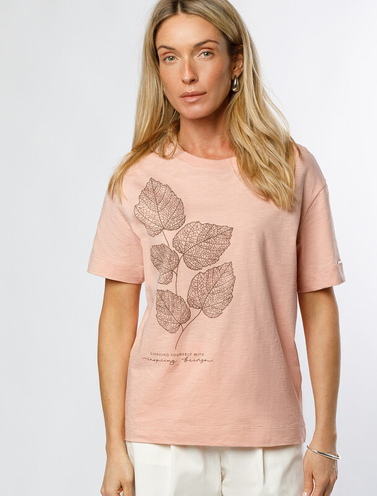 Совместные покупки Магнитогорск Женская одежда Футболки — Vilatte Футболка из фактурного полотна с авторским принтом D49.071 пудровый_лист