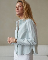Футболка выполнена из премиального хлопка. Наличие эластана гарантирует абсолютный комфорт и долговечность изделия. Модель в полоску предлагаем сочетать с однотонными вещами базовой палитры. Изделие дополнено металлическим логотипом бренда.