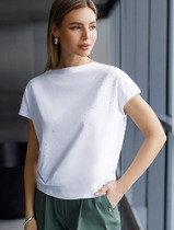 Футболка с цельнокроеным рукавом выполнена из премиального хлопка. Модель украшена принтом расшитым сияющими пайетками. На спинке изделия декоративный разрез без пуговицы. Наличие эластана в составе изделия гарантирует комфорт и формоустойчивость. Внизу металлический логотип бренда. Хорошо впишется как в праздничный образ, так и в повседневный аутфит.