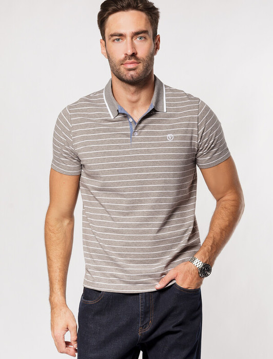 Vilatte Футболка-Поло из премиального хлопка с эластаном U49.025 белый-серый