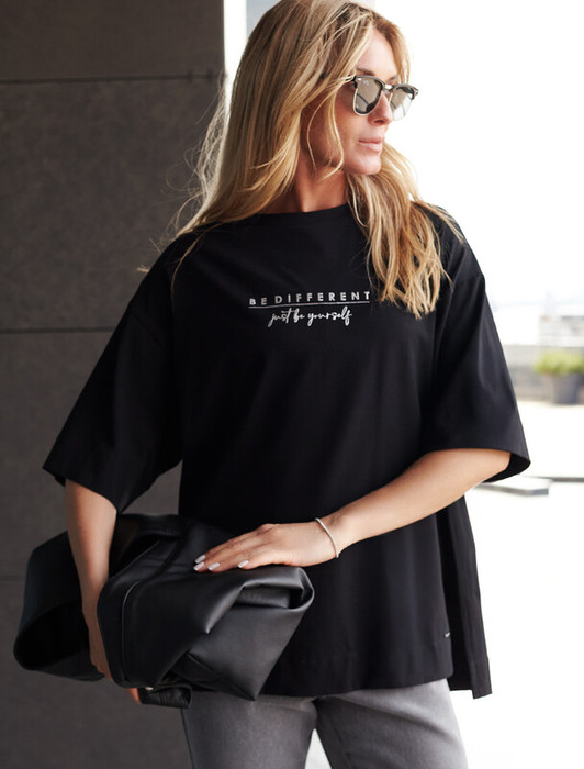 27.03 Vilatte Футболка свободного кроя с авторским принтом D49.082 черный_be_di