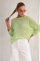 Летний топ полупрозрачной вязки выполнен из хлопковой пряжи. Идеально подойдет в жару, с мини-топом или в сочетании с купальником. Также отлично впишется в многослойные образы с джинсами и жакетом. Модель дополнена металлическим логотипом бренда.