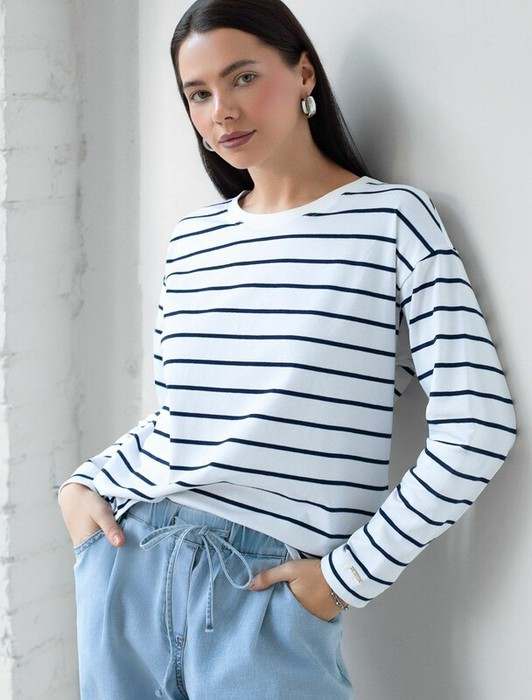 Заказать Vilatte Лонгслив с принтом из премиального хлопка с эластаном D49.148 белый-т.си