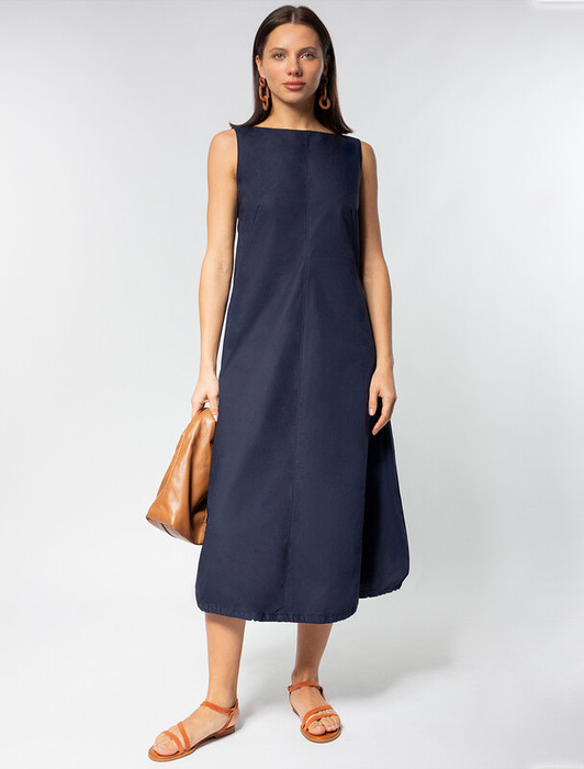 06.04 Vilatte Платье-баллон на кулиске внизу из плотного поплина D22.200 темно-