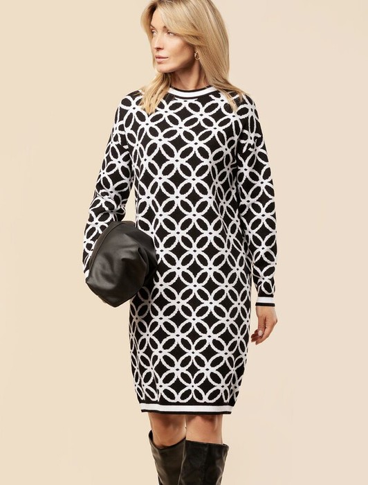 27.03 Vilatte Платье двуслойной жаккардовой вязки с кашемиром D32.056 черный-бе