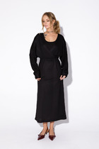Элегантное платье прямого кроя черного цвета выполнено из воздушной сетчатой ткани с прозрачными рукавами, придающими образу лёгкую игривость. Мягкая вискозная подкладка обеспечивает комфорт, сохраняя при этом эффект полупрозрачности. Универсальный черный цвет делает платье идеальным для базового гардероба.