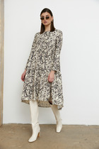 Элегантное платье прямого кроя черного цвета выполнено из воздушной сетчатой ткани с прозрачными рукавами, придающими образу лёгкую игривость. Мягкая вискозная подкладка обеспечивает комфорт, сохраняя при этом эффект полупрозрачности. Универсальный черный цвет делает платье идеальным для базового гардероба.