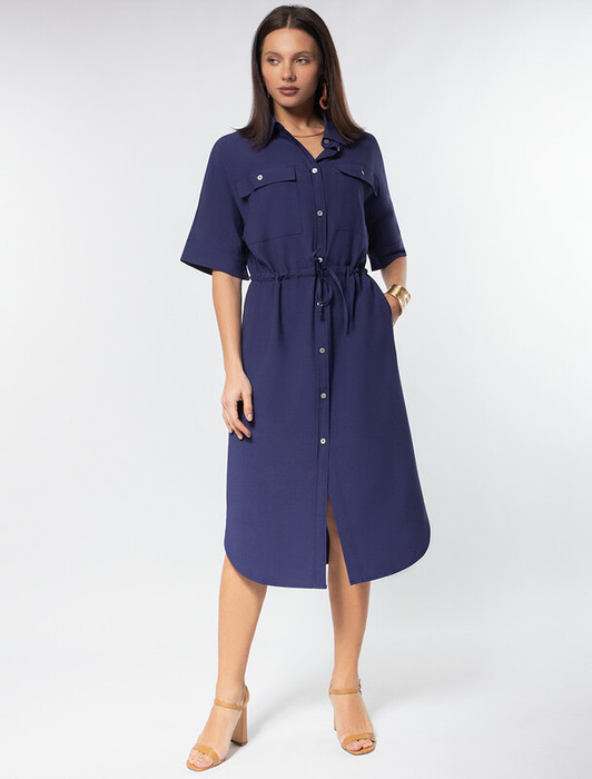 Совместные покупки Магнитогорск Женская одежда Платья — Vilatte Платье-рубашка из плотного лиоцелла D22.209 дымчатый синий