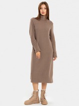 Платье тонкой вязки выполнено из хлопка. Лаконичная модель с высоким воротом дополнена манжетами и разрезами по бокам. Изделие свободно сидит по фигуре и не сковывает движений. Мягкая пряжа очень приятная к телу не колется и сохраняет тепло при этом не перегревая. Изделие дополнено металлическим логотипом бренда.