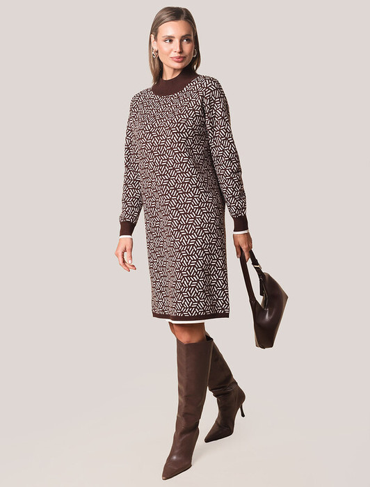 Совместные покупки Магнитогорск Женская одежда Платья — Vilatte Платье жаккардовой вязки с кашемиром D32.112 кофейный