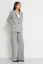 Прямые брюки выполнены из трикотажа джерси. Модель дополнена боковыми карманами и поясом на резинке сзади. Заутюженные стрелки визуально вытягивают силуэт. Изделие хорошо держит форму, отлично тянется и почти не мнется во время использования. Идеальный вариант в офис или в повседневный классический стиль.