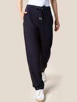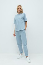 Брюки выполнены из премиального футера трехнитки без начеса. Модель дополнена эластичным поясом на резинке и хлопковым шнурком с золотистой фурнитурой. По бокам два кармана. Наличие эластана в составе гарантирует формоустойчивость и износостойкость изделия. Изделие сочетается в костюме с худи D49.054