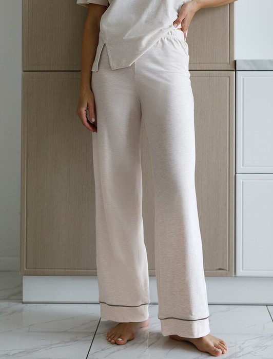 Совместные покупки Магнитогорск Женская одежда Домашняя одежда — Vilatte Прямые брюки из эластичного хлопка с контрастным кантом D44.120 бежевый