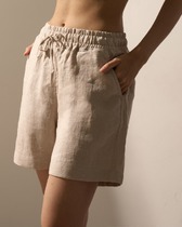 Шорты выполнены из футера двухнитки с эластаном. Модель прямого кроя дополнена боковыми карманами и одним задним карманом.  Пояс выполнен из эластичного трикотажа в рубчик. В пояс вставлен плоский хлопковый шнур в тон изделия с серебристыми наконечниками. Изделие дополнено металлическим логотипом бренда. Сочетается в костюме с жакетом D49.078, джемпером D49.079, D49.080 и футболкой D49.081