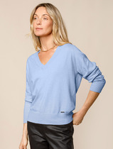 Vilatte Джемпер тонкой вязки из хлопка с кашемиром D39.352 голубой меланж