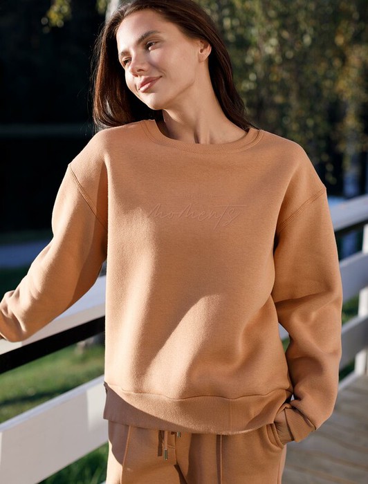 Vilatte Свитшот из премиального футера трехнитки с начесом D49.061 охра_moments