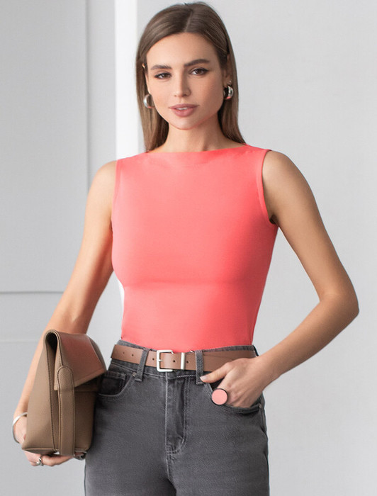 — 22.03 Vilatte Топ из премиального хлопка с эластаном D43.201 розовый коралл
