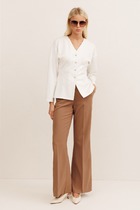 Свободные брюки из трикотажного костюмного полотна. Эластичный пояс на резинке с регулируемым шнурком из эко-кожи комфортно фиксирует изделие на талии.  Модель дополнена двумя боковыми и задним карманами.