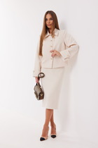 Юбка А-силуэта выполнена из денима с эластаном. Модель с посадкой на талии расширяется к низу за счет вставок из декоративных клиньев, расположенных спереди и сзади. Изделие дополнено пятью карманами как у джинс и брендированным патчем из эко-кожи. Сочетается в комплекте с курткой D51.033
