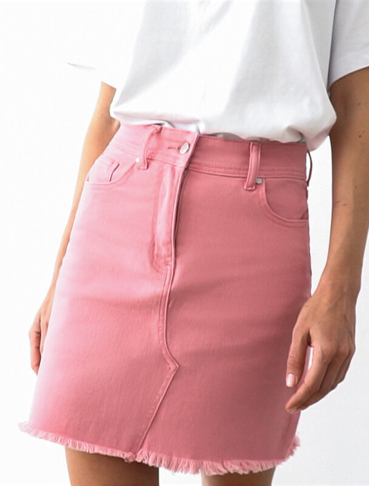 Vilatte Юбка из супер-эластичного денима с необработанным краем D56.043 розовое