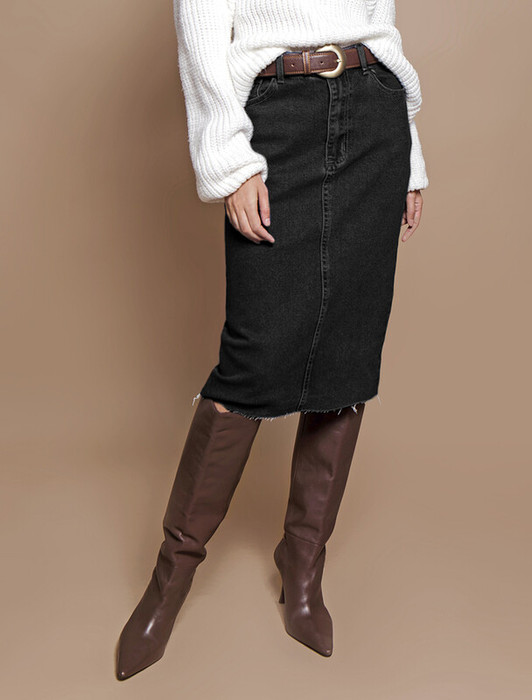 Юбка-карандаш в черном оттенке, выполнена из эластичного денима. Высокая посадка на талии сделает любой образ элегантным. Комфортно сидит по фигуре и подойдет даже для офисного дресс-кода, как для повседневного образа.