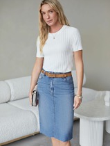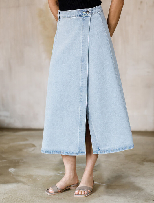 Юбка А-силуэта с застежкой на запАх выполнена из эластичного денима. Модель свободного кроя с посадкой на талии. Застежка на две пуговицы. Мягкий эластичный деним обеспечит комфорт и свободу движений. Хорошо сочетается с любым верхом и разной обувью.