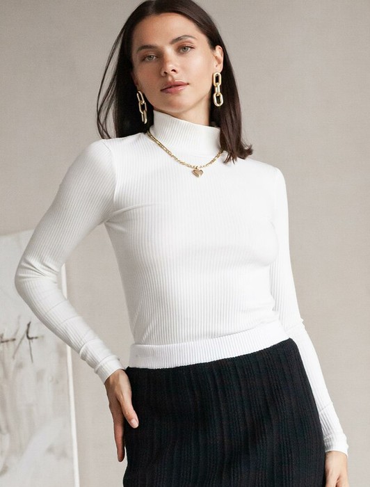 Совместные покупки Магнитогорск Женская одежда Джемперы, свитеры, водолазки — Vilatte Водолазка из трикотажа в широкий рубчик D49.039 молочный