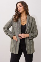 Жакет выполнен из футера двухнитки с эластаном. Модель без карманов с воротом стойка и застежкой на молнию серебристого цвета. Эластичный материал гарантирует комфорт и формоустойчивость. Сочетается в костюме с брюками D44.138, D44.139 и шортами D48.008. Изделие дополнено металлическим логотипом бренда.