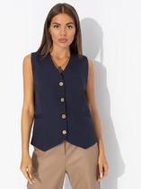 Жилет с воротом стойка выполнен из мягкой пряжи с кашемиром. Модель дополнена боковыми разрезами. Хорошо сочетается лонгсливами и блузками. Мягкая пряжа очень приятная к телу, поддержит комфорт на протяжении всего дня, при этом не перегревая. Сочетается в костюме с брюками D38.013, D38.012 и юбкой D36.016