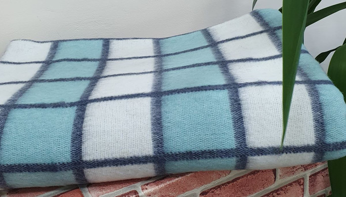 Совместные покупки Магнитогорск Товары для дома и дачи Подушки, одеяла — ВЛАДЛЕН Одеяло полушерстяное (50% Шерсть) Клетка Бело-Серо-Бирюзовая