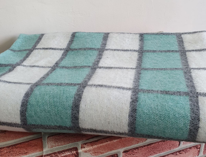 Совместные покупки Магнитогорск Товары для дома и дачи Подушки, одеяла — ВЛАДЛЕН Одеяло полушерстяное (50% Шерсть) Клетка Бело-Серо-Бирюзовая