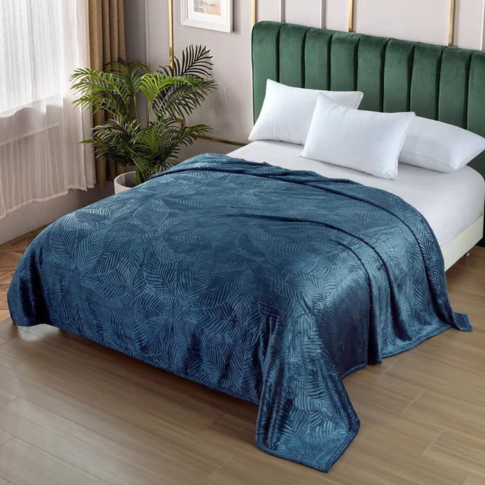 Совместные покупки Магнитогорск Товары для дома и дачи Покрывала, пледы — ВЛАДЛЕН Пледы велсофт - Пальмовая ветка (Индиго)
