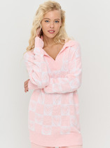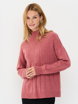 Джемпер прямого силуэта, выполнен из 100% вискозы. Перед и спинка цельнокроенная. Рукав длинный. Горловина типа "водолазка". Длина изделия - середина бедра.