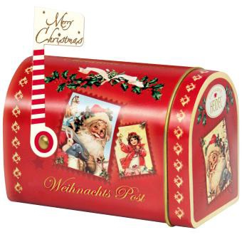 Рождественский почтовый ящик Heidel «Рождественская ностальгия» — это восторг с первого взгляда. Элегантная металлическая коробка оформлена в стиле американского почтового ящика и украшена поздравлением с Рождеством Христовым с ностальгическими рождественскими мотивами. Но настоящий сюрприз ждёт вас при открытии почтового ящика: «посылка» из восхитительных мини-конфет из молочного шоколада с кремовой начинкой из пралине, а также тающие во рту плитки премиального молочного шоколада. Этот подарок — рай для глаз и вкуса. 9штук.