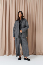 Жакет женский прямого силуэта со спущенным плечом, с застежкой по переду на молнию. Вырез горловины круглый. Рукав втачной двухшовный. На жакете спереди накладные карманы. Жакет на подкладке.