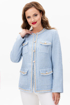 Льняной  жакет  современного прямого кроя с накладными карманами. Изделие без подкладки.