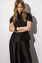 Этот жакет от Анелли станет универсальным элементом вашего повседневного гардероба. Модель прямого силуэта со свободным кроем и спущенным плечом обеспечивает комфорт и современный вид. Жакет дополнен отложным воротником на стойкой и длинными втачными рукавами с декоративными патами. Застёжка выполнена на молнии с дополнительной отстрочкой на кнопках для удобства. Функциональность подчеркивают два прорезных кармана в виде листочек.