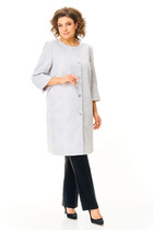 Жакет прямого кроя выполнен из текстильной ткани песочного цвета с брендированным подкладом. Характеристики: прямой крой, подкладка, отложной воротник, по переду крупные накладные карманы, застёжка центральная на молнии прикрытая планкой, по линии талии шлевки, в комплекте пояс из ткани основного изделия, рукав свободный прямого кроя. Длина изделия 71 см, длина рукава 59 см.