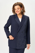 Жакет прямого кроя выполнен из ткани графитового цвета. Характеристики: прямой крой, брендированный подклад (стеганный и утепленный), остроугольный воротник из эко-кожи, застежка центральная на петли пуговицы, по передней части изделия накладные карманы, рукав спущенный, втачной, низ рукава - манжета на пуговице. Длина жакета по спинке 70 см, длина рукава от края горловины 77 см