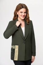 Жакет укороченный прямого кроя выполнен из текстильного полотна черного цвета. Характеристики: прямой крой, подкладка, воротник с остроугольным лацканом, подплечики, застежка на петли, пуговицы, втачной рукав, три пуговицы на манжете. Длина рукава 61см, длина изделия 39см.