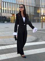 Двубортный жакет на подкладке, прямого силуэта. Обработаны прорезные карманы по переду. Рукава втачные одношовные, обработаны шлицей