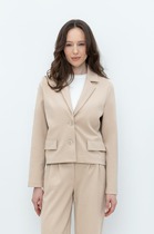 Двубортный жакет на подкладке, прямого силуэта.. Жакет выполнен из плотной пальтовой ткани. Обработаны прорезные карманы по переду. Рукава втачные одношовные, обработаны шлицей