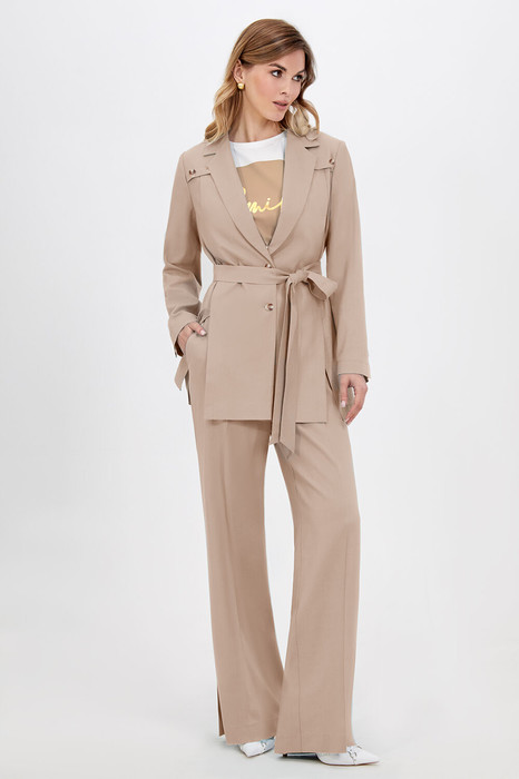 Элегантность встречается с повседневностью! Этот жакет прямого кроя сочетает в себе классические детали с современной интерпретацией, такие как воротник с лацканами, застёжка на двух пуговицах и кокетки, дополненные отделочными пуговицами по переду. Интересное решение рельефов и среднего шва спинки разбивает классический образ и придаёт ему повседневный, спортивный оттенок, а разрезы в движении добавляют дополнительную динамику. Рукава втачные двухшовные, со шлицами с отделочными пуговицами. Частично на подкладке. Жакет можно носить с поясом-завязкой для акцента на талии или оставить свободным для раслабленного,но стильного образа.