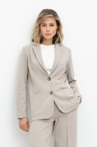 Жакет удлиненный, из твида, свободного силуэта с центральной бортовой застежкой на пуговицы до линии перегиба лацкана. По переду имеется отрезной бочок и вертикальные вытачки. С прорезными карманами с клапаном и двумя обтачками. Спинка цельная. Воротник пиджачного типа. Рукав двухшовный, втачной. Жакет на подкладке. Длина рукава 63 см, длина по спинке 75 см.