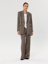 Элегантный женский жакет, выполнен из жаккардовой ткани, в стиле «Шанель». Жакет свободного силуэта, с накладными карманами, по краю карманов тесьма с вытрепанным краем. Застежка центральная на петли пуговицы, горловина круглая. Рукава втачные, длинные. Жакет на подкладке.