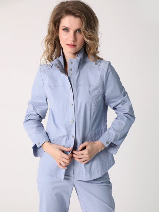 Стильный безподкладочный жакет для женщин и девушек любого возраста прекрасно дополнит гардероб на весну и лето. Универсальная длина позволяет сочетать его с брюками, шортами, юбками или платьем. Жакет-куртка из  приятной на ощупь плотной хлопковой ткани - комфортная и практичная одежда для прохладного летнего вечера. Длинные втачные рукава легко регулируются патой. Застежка выполнена в виде  кнопок и переходит в воротник-стойку. На талии есть кулиска, при желании вы можете подчеркнуть фигуру. Карманы прорезные и достаточно удобные. В нашей коллекции есть идеально комплектующиеся с этим жакетом брюки (арт. 25241), выполненные из такого же хлопка. Собирайте свои образы, дополняйте их яркими аксессуарами и наслаждайтесь комфортом в летние дни!