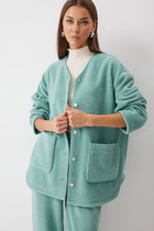 Стильный жакет из плотного джинса темно-синего цвета с актуальным кроем оверсайз с заниженной линией плеча подойдет для фигуры любого типа. Модель дополнена воротником с лацканами пиджачного типа и длинными рукавами с манжетами на пуговицах. Фронтальная застежка на 3 петли и джинсовые болт-пуговицы. Горловина обработана втачным воротником на стойке, борт оформлен отложным лацканом. Спереди обработаны большие вместительные накладные карманы и один нагрудный накладной карман. По спинке обработана шлица в среднем шве. По жакету декоративная контрастная коричневая двойная отделочная строчка и петли. Жакет-куртка без подкладки-это модная и практичная модель, которая дополнит и украсит любой образ в стиле casual.