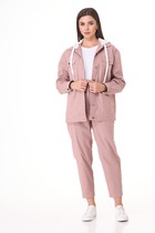 Жакет полуприлегающего силуэта, на подкладке; воротник пиджачного типа; рукава втачные; по переду функциональные прорезные карманы; застежка двубортная на петли и пуговицы.