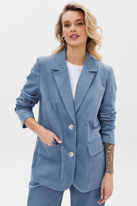 Современный жакет из хлопкового штрукса от GO составит беспроигрышную комбинацию с вашими платьями, юбками и брюками.