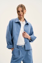 Жакет в стиле smart casual. Жакет прямого силуэта с пиджачным воротником, имеет удобные накладные карманы и застежку на 2 пуговицы. На левом лацкане вышивка-логотип в цвет ткани. Низ и борта имеют открытые края (эффект необработанного шва), укреплены дополнительной строчкой. Жакет без подкладки.